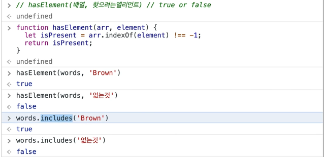 arr.includes( ) ; 있는지 없는지 T/F로 표시