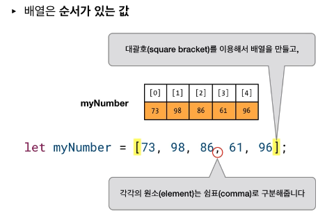 myNumber.push(96) ; 배열 끝에 요소(element) 삽입