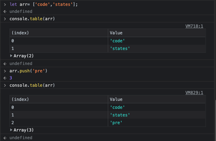 arr.push() ; 마지막 요소(element) 추가