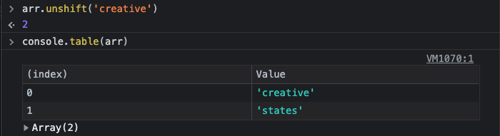 push(x) , unshift(x) -> 추가 -> 변경된 배열의 길이 리턴