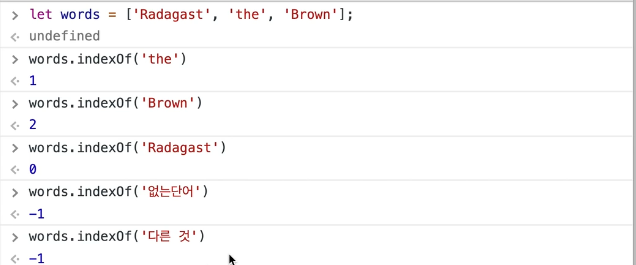 -> 있는지 없는지 검사하기 위해서는 -> .indexOf()가 '-1'인지 보면 됨