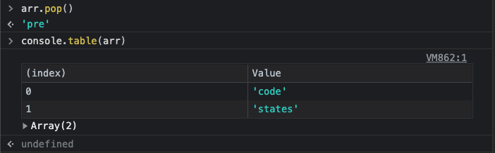 arr.pop() ; 마지막 요소 삭제