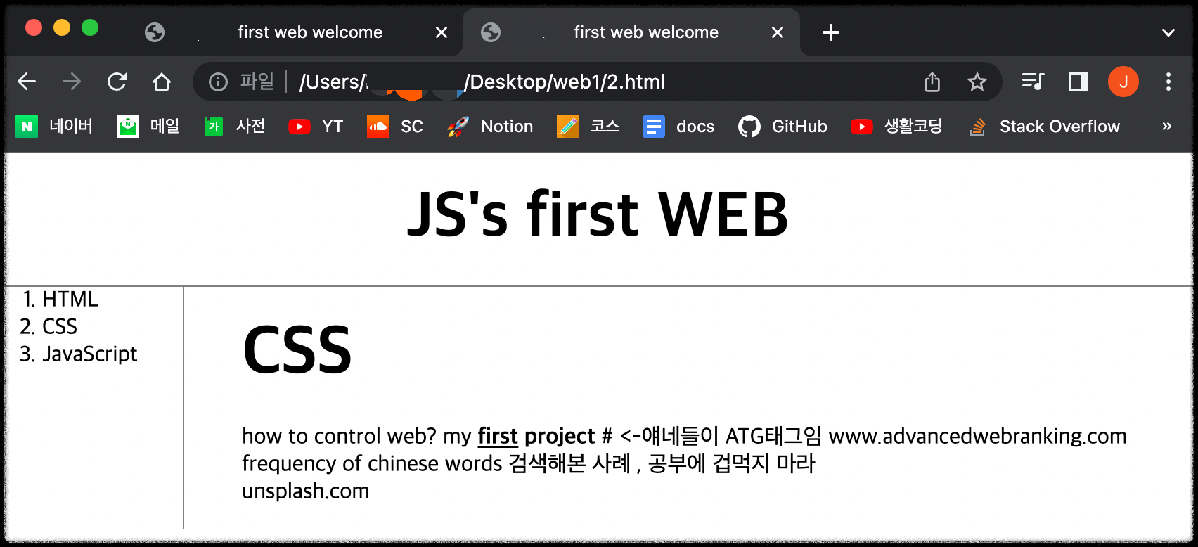 | HTML 기초 - [Codestates] Section1 (1) | 2022.10.27 |
