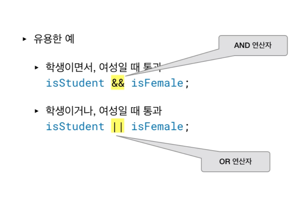 - 논리 연산자를 (&&, ||, ! ...) 통해 복잡한 조건을 간결하게 작성할 수 있다.