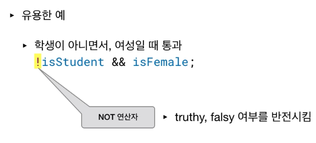 -> AND 연산자(&&)를 사용했을 경우 두 조건이 모두 truthy 해야만 true, 그렇지 않으면 false가 출력됩니다.