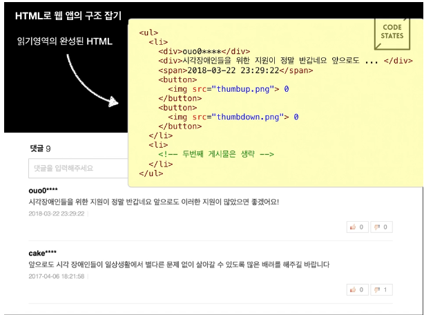 - <div> 요소 또는 <section>, <header> 등의 시맨틱 요소로 영역을 구분하는 이유를 이해할 수 있다.