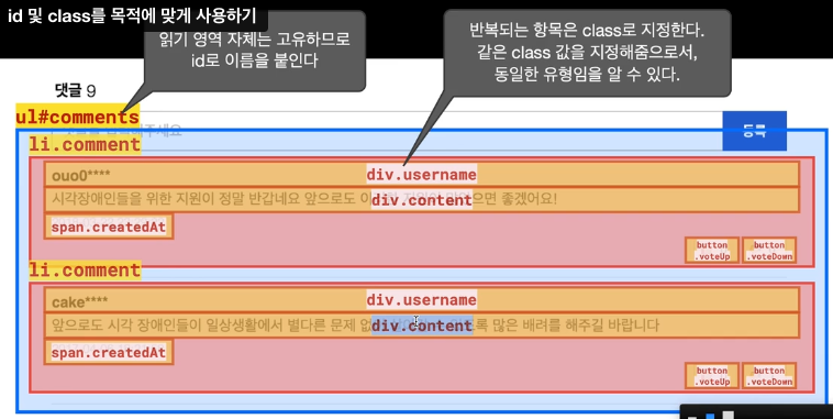 id와 class 를 목적에 맞게 사용하기